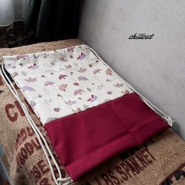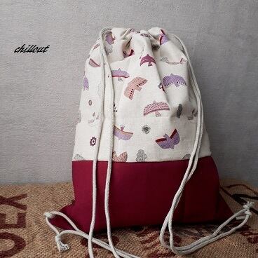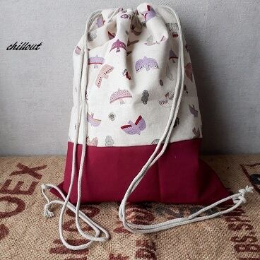 ピンクの鳥×パープルの切替ナップザック【0067】