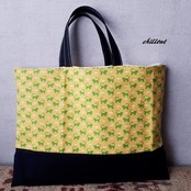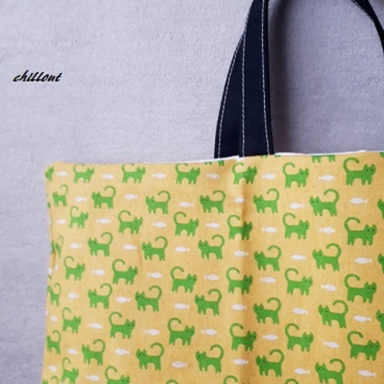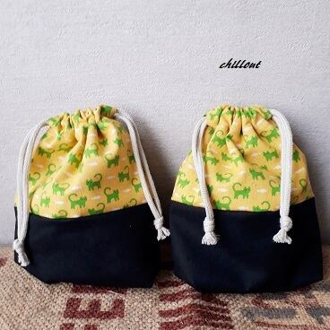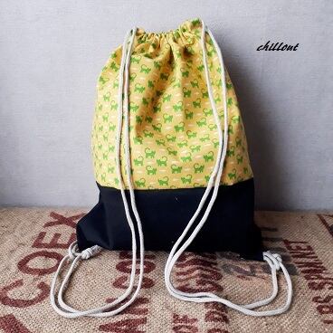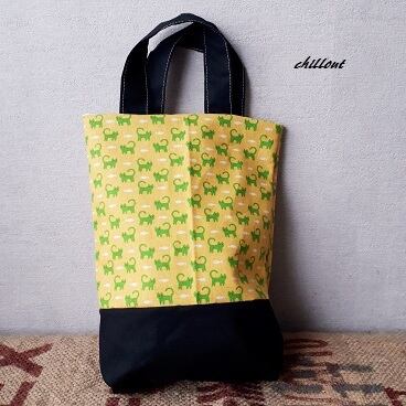 入園バッグ9点セット:イエロー猫柄×黒の切替セット【0072】