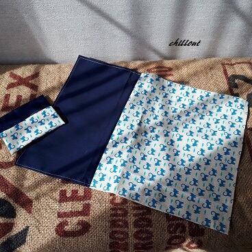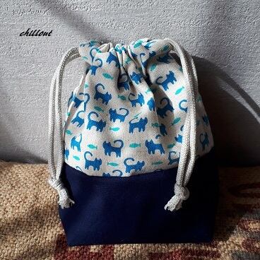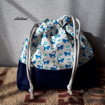 ブルーの猫ちゃんと紺色の切替がさわやかでかっこいい!
