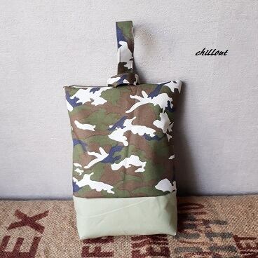 ミリタリー×ライムグリーンの切替入園バッグ6点セットが出来上がりました!