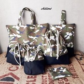 ミリタリー×ブラックの切替入園バッグ6点セットが出来上がりました!