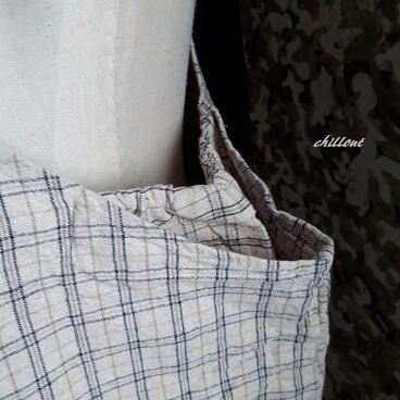 カフェエプロン:リネンチェックのオーバーオールデザイン【0099】