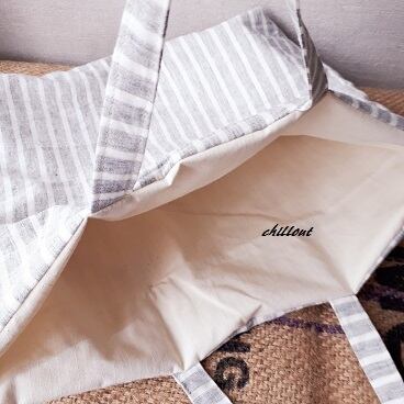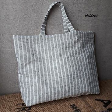 ワッシャーリネンのブルーボーダーのトートバッグが出来上がりました!