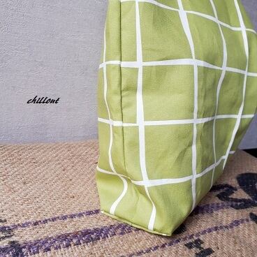 ライムグリーンの大きなトートバッグ【0142】
