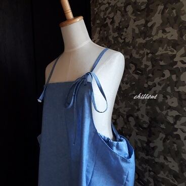 ターコイズブルーのリネンカバーオールエプロンが出来上がりました!