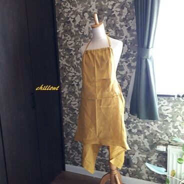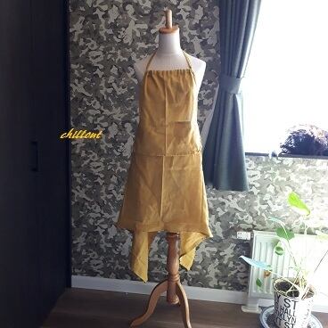 マスタード色のとってもおしゃれなカフェエプロンが出来上がりました!