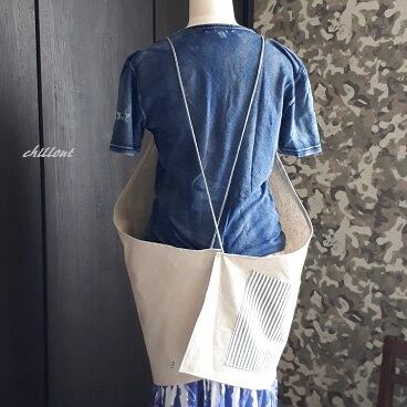 今回はザ・リネン!と言う生地に水色のボーダーでポケットを。