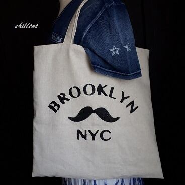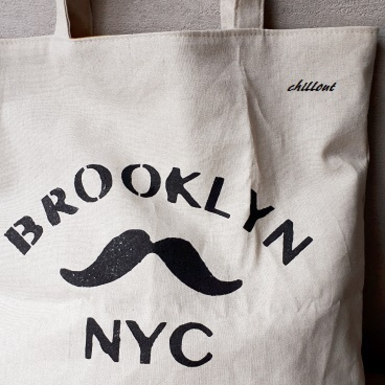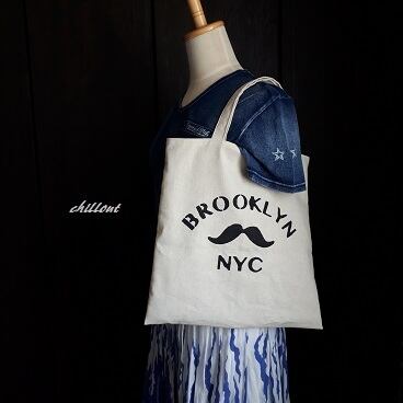 シンプルなキナリの理念にブラックのブルックリンプリント。
