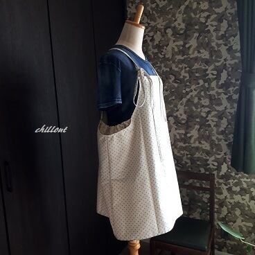 贅沢にリネンを使ったカバーオールチュニックエプロンです。