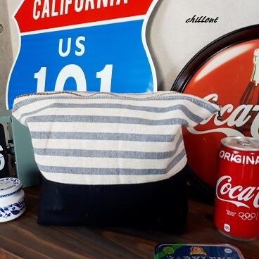 ブルーボーダー×ブラックのポーチが出来上がりました。