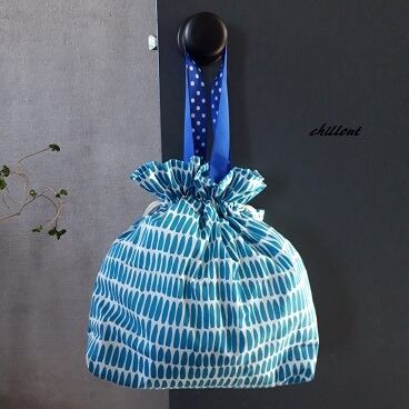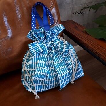 和をイメージしたコットン生地で巾着トートバッグを作りました。