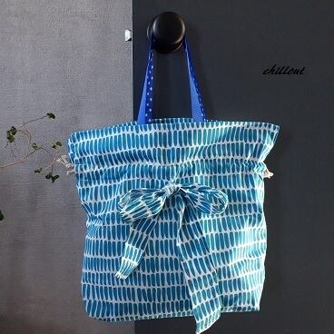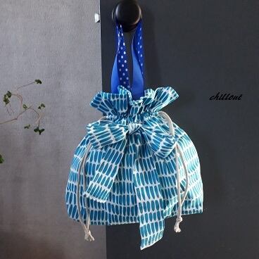 遊び心のあるパターンと巾着×リボンの大胆な2WAY。