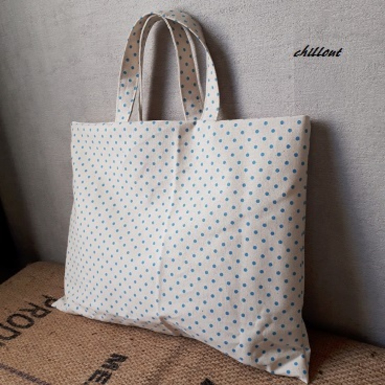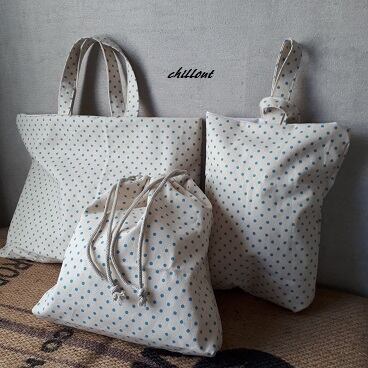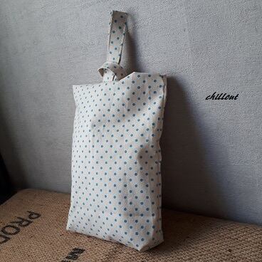 ハーフリネンの水色ドット柄の入園バッグ3点セットが出来上がりました!