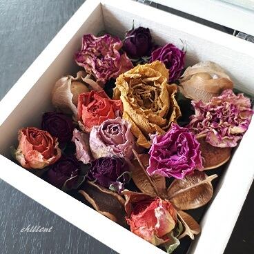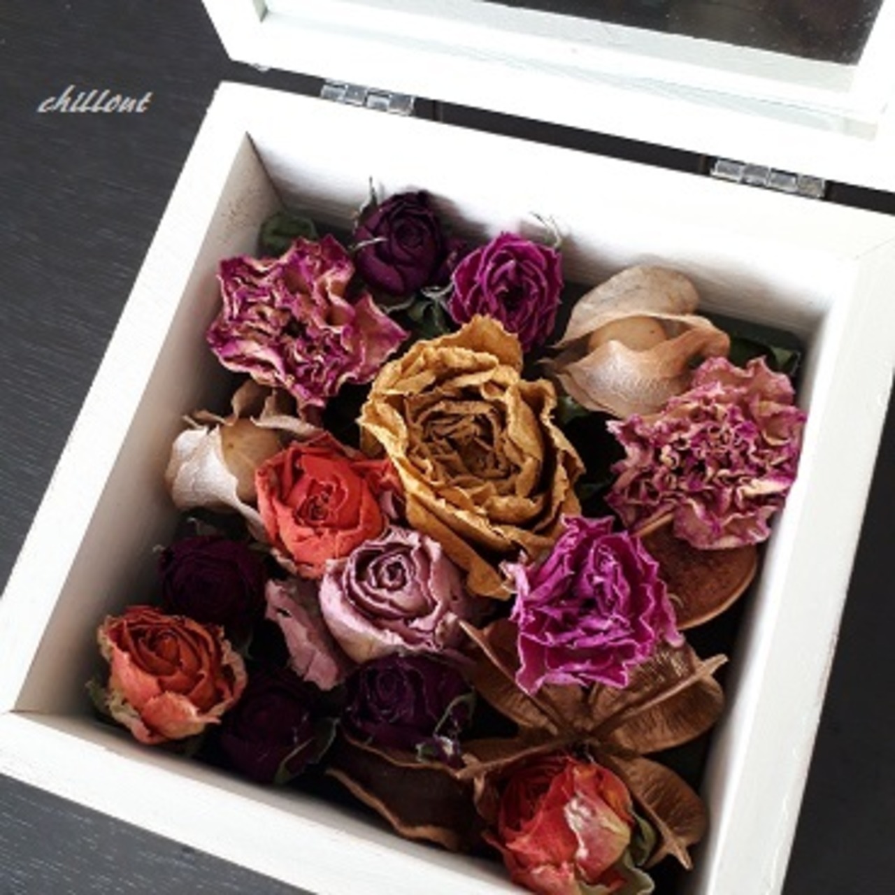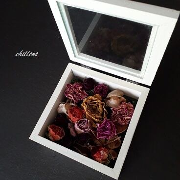 蓋が開くボックスなのでアロマオイルなどをドライフラワーに垂らして