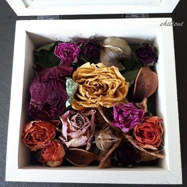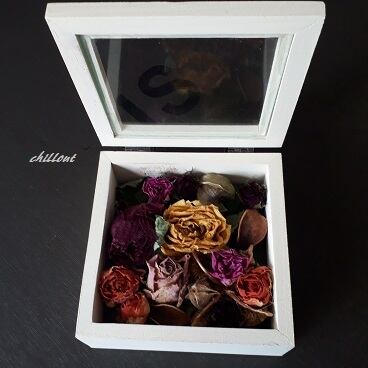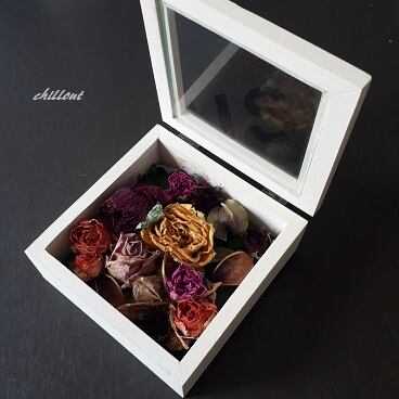蓋が開くボックスなのでアロマオイルなどをドライフラワーに垂らして