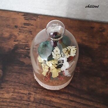 高さ9㎝のガラスのドームの中に天然のドライフラワーを閉じ込めました。