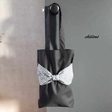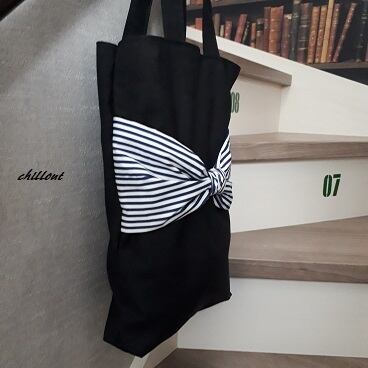 ブラック×ネイビーボーダーのリボンバッグが出来上がりました!