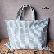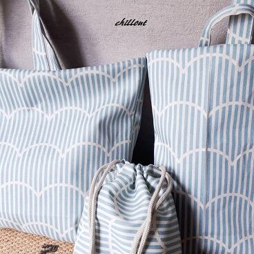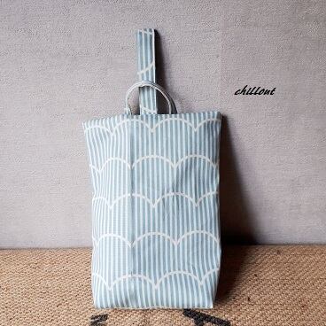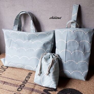 水色ボーダーの入園バッグ3点セットが出来上がりました!