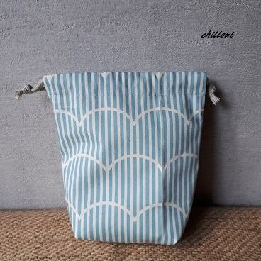 水色ストライプ巾着【0234】