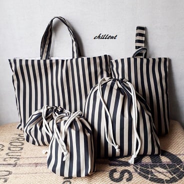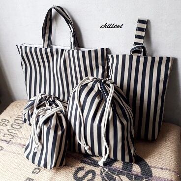 とってもかっこよく、おしゃれなストライプの入園バッグ5点セットが出来上がりました!