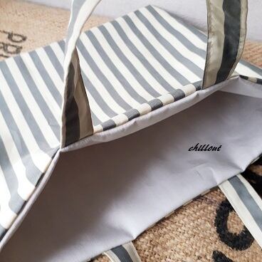 とってもかっこよく、おしゃれなストライプの入園バッグ5点セットが出来上がりました!