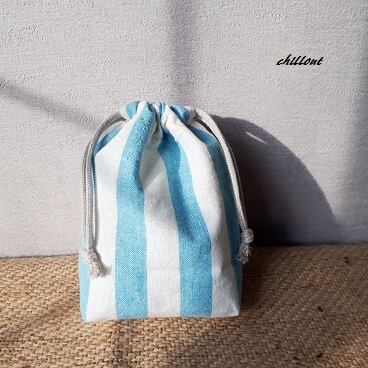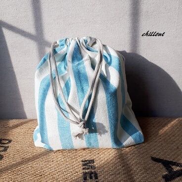 北欧デザインの水色ストライプの入園バッグ5点セットが出来上がりました!