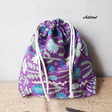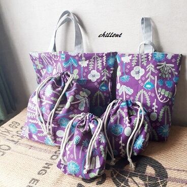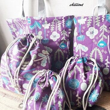 【北欧リネン】入園バッグ5点セット:フラワーバード:パープル【0264】