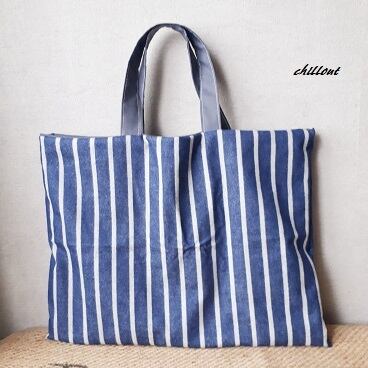 【ネルデニム】入園バッグ5点セット:ネイビーブルーストライプ【0271】