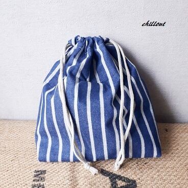 【ネルデニム】入園バッグ5点セット:ネイビーブルーストライプ【0273】