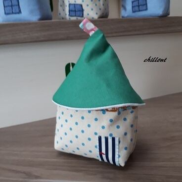柔らかいコットンでできた小さなお家の小物入れが出来上がりました。