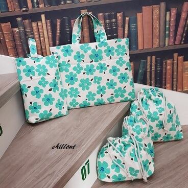 【北欧リネン】入園バッグ5点セット:ブルーフラワー【0284】
