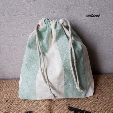 シンプルなグリーンストライプの入園バッグセットが出来上がりました!