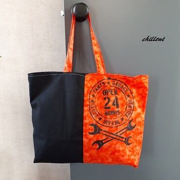 【outlet】オレンジ×ブラック:ステンシルトートバッグ【0322】