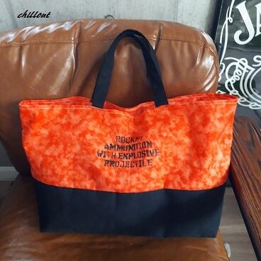 オレンジ×ブラックにステンシルを施した男前バッグが出来上がりました!