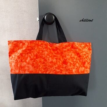 オレンジ×ブラック:ステンシルトートバッグ【0323】