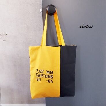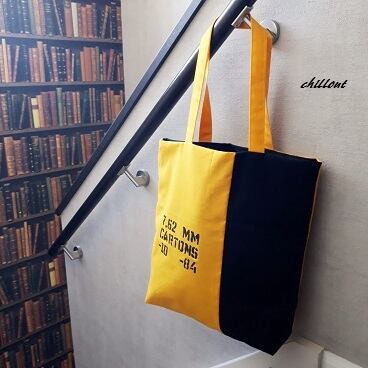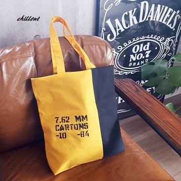 ミリタリーステンシルのイエロー×ブラックトートバッグです!