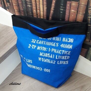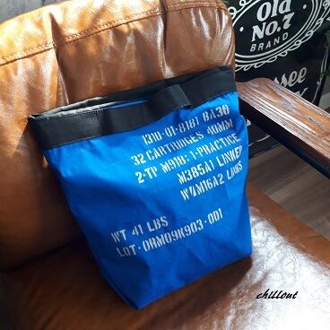 ステンシルトートバッグ:ブルー×ブラック【0331】