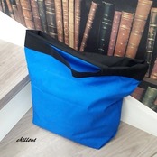 ブルー×ブラックのバッグはマチもあり見た目以上に大容量です。