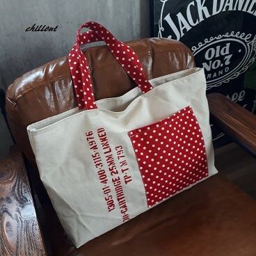 ビッグトートバッグ:リネン×レッドドット【0333】