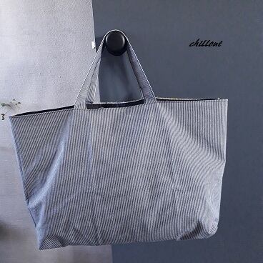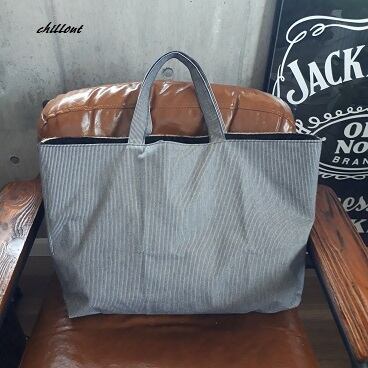 背中のデニムストライプと持手はお揃いで、内布はシックにブラック!