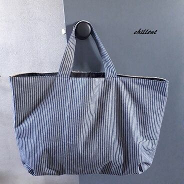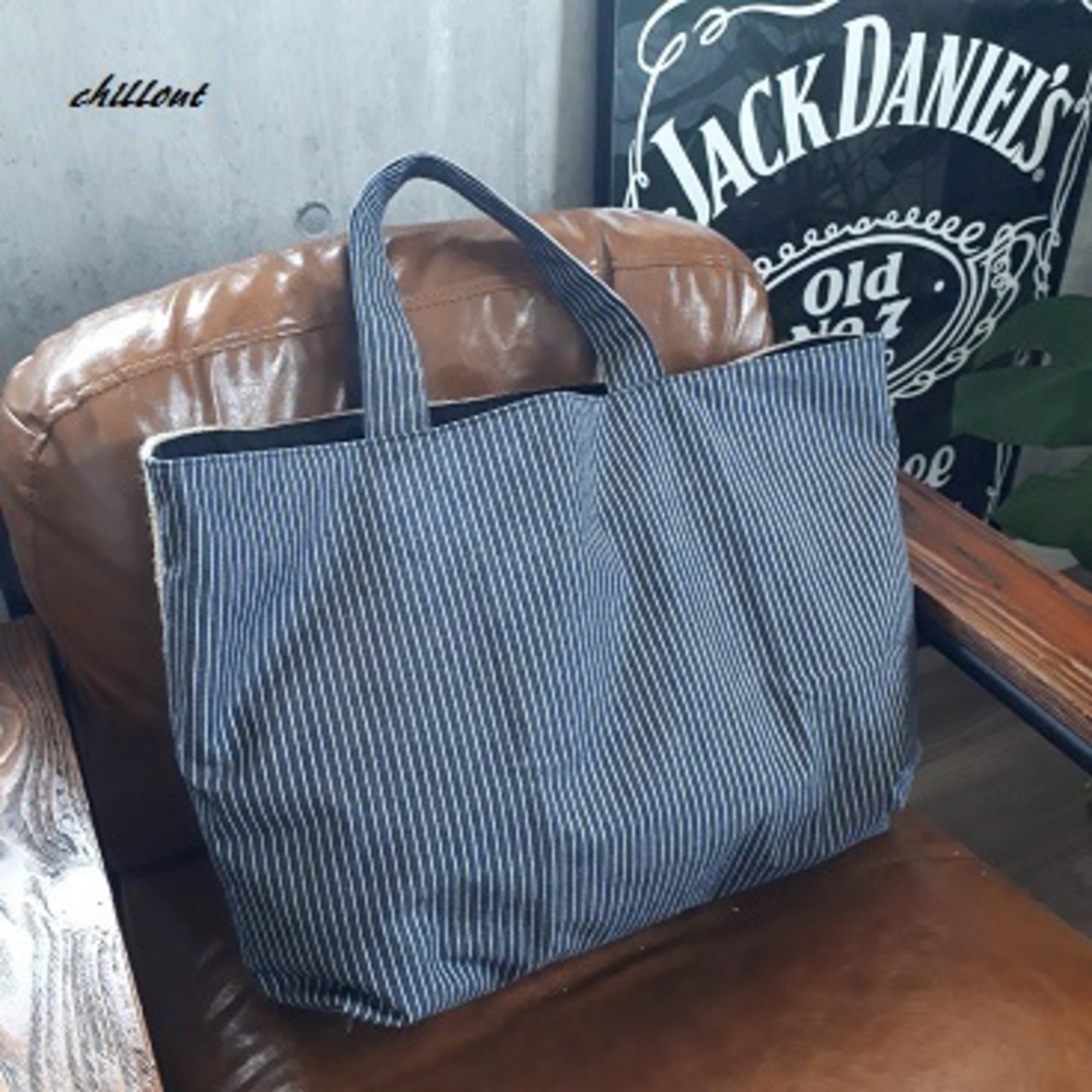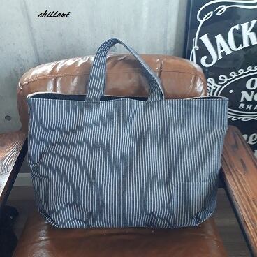 背中のデニムストライプと持手はお揃いで、内布はシックにブラック!