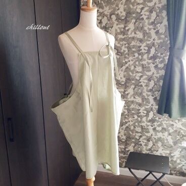 【背中がかわいい】チュニックエプロン:ピスタチオ【0343】