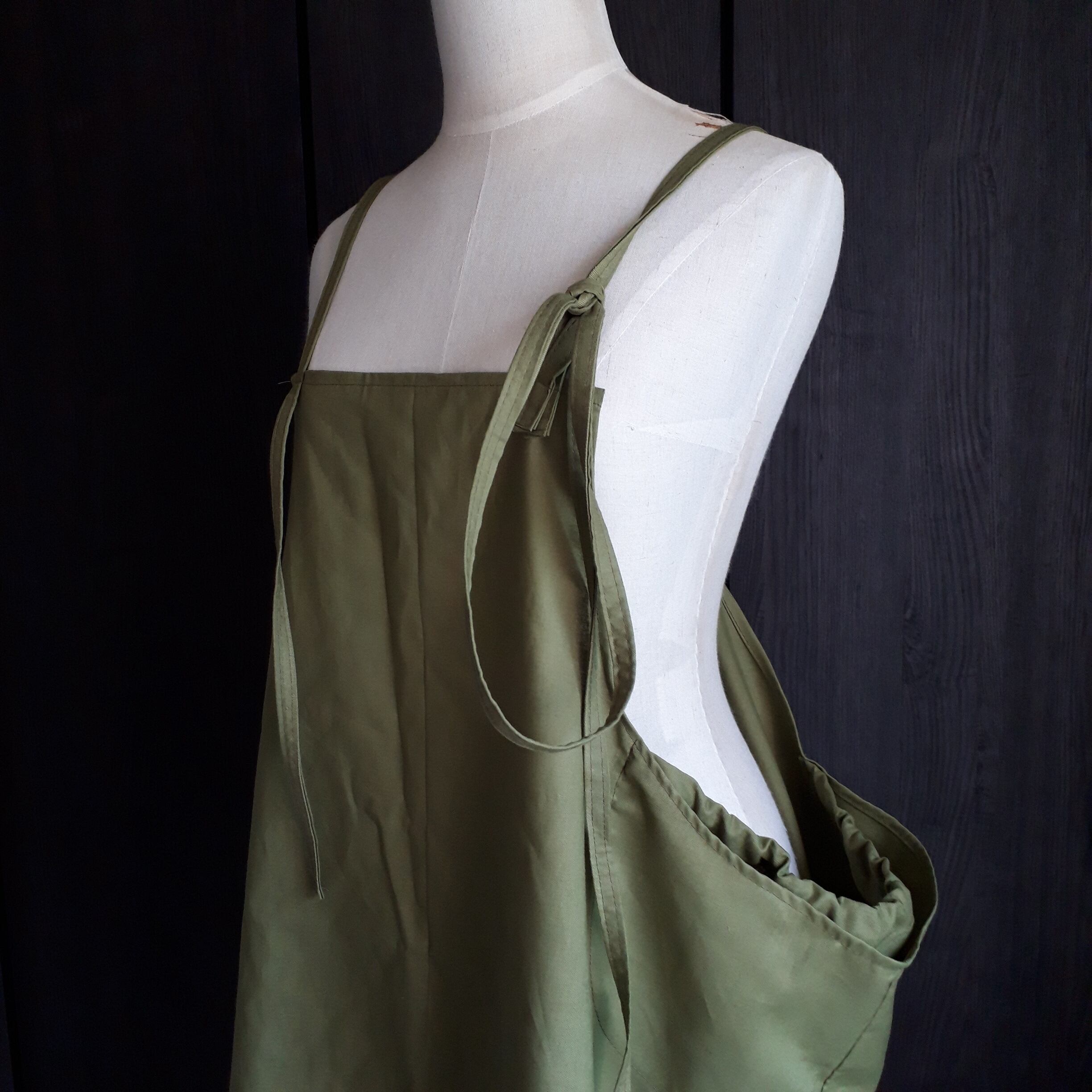 【背中がかわいい】チュニックエプロン:グリーンティー【0344】