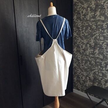 【背中がかわいい】チュニックエプロン:ホワイト×ブラック【0348】