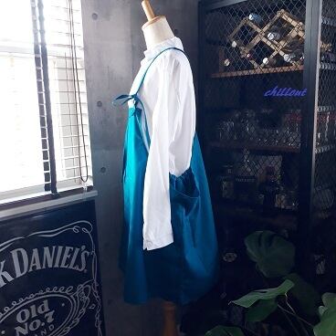 【背中がかわいい】チュニックカフェエプロン:ブルーハワイ【0354】