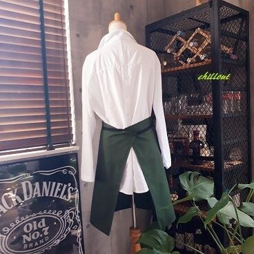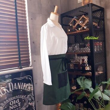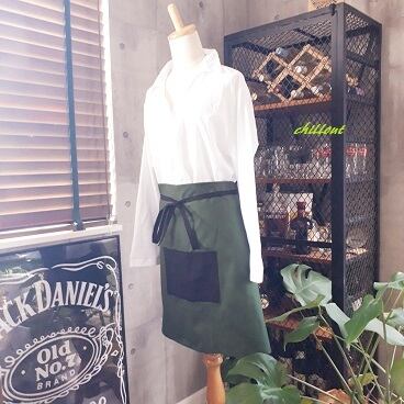 オリーブ×ブラック色のバリスタショートエプロンが出来上がりました。
