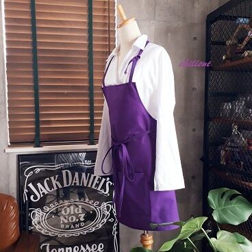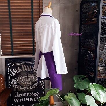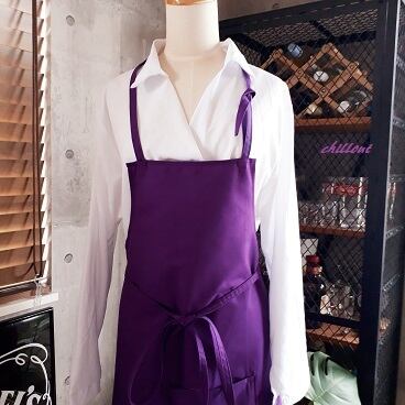 カシスのようなきれいな紫色のカフェエプロンはとても人気のデザイン。