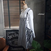 【背中がかわいい】エプロンドレス:ネイビーストライプ【0373】