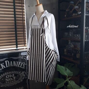 【背中がかわいい】エプロンドレス:チョコレートストライプ【0374】
