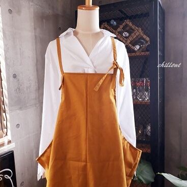 【背中がかわいい】エプロンドレス:濃いマスタード【0382】